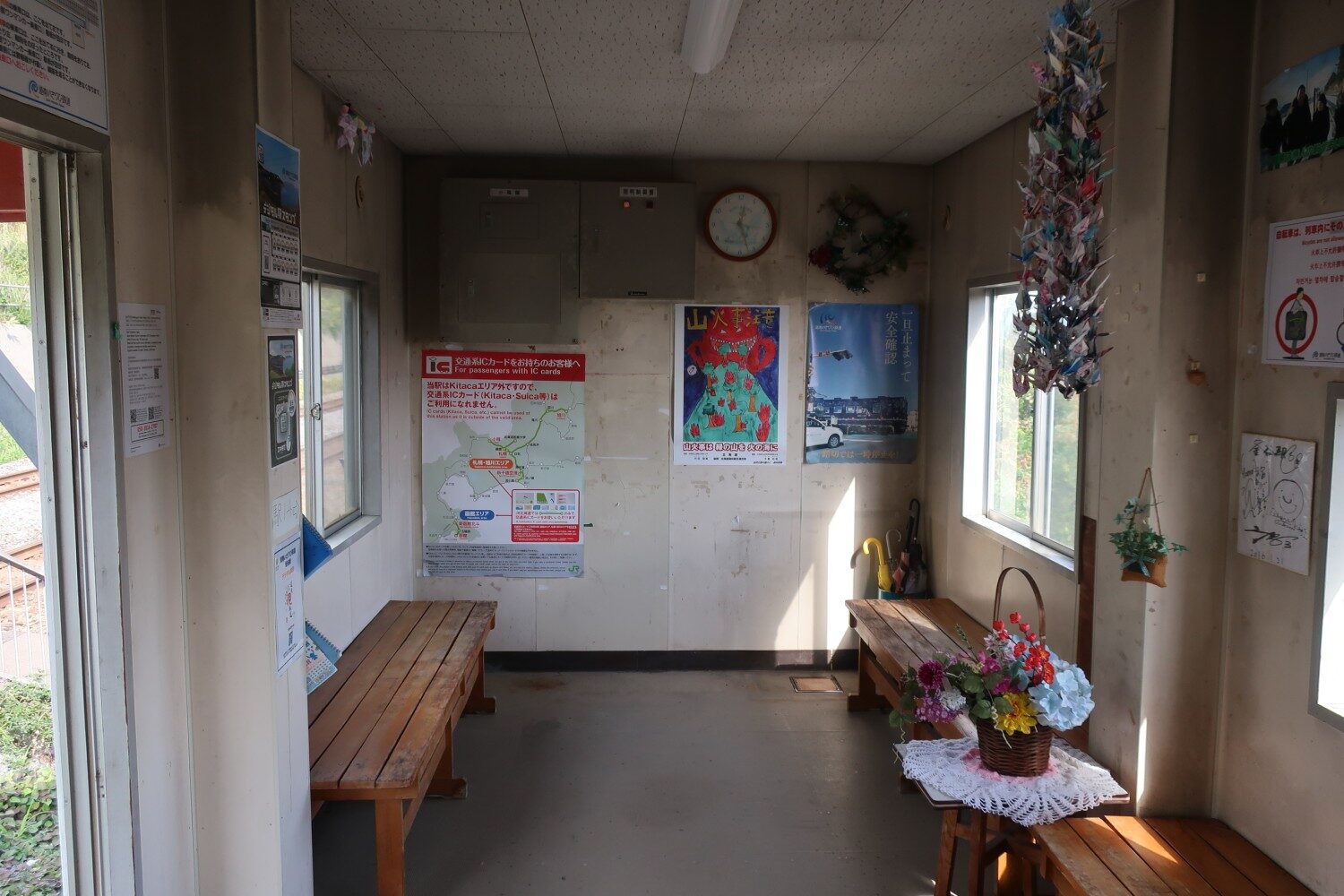 このようなオリジナリティのある駅舎デザイン、という点では、函館本線の尾白内駅と似ている。