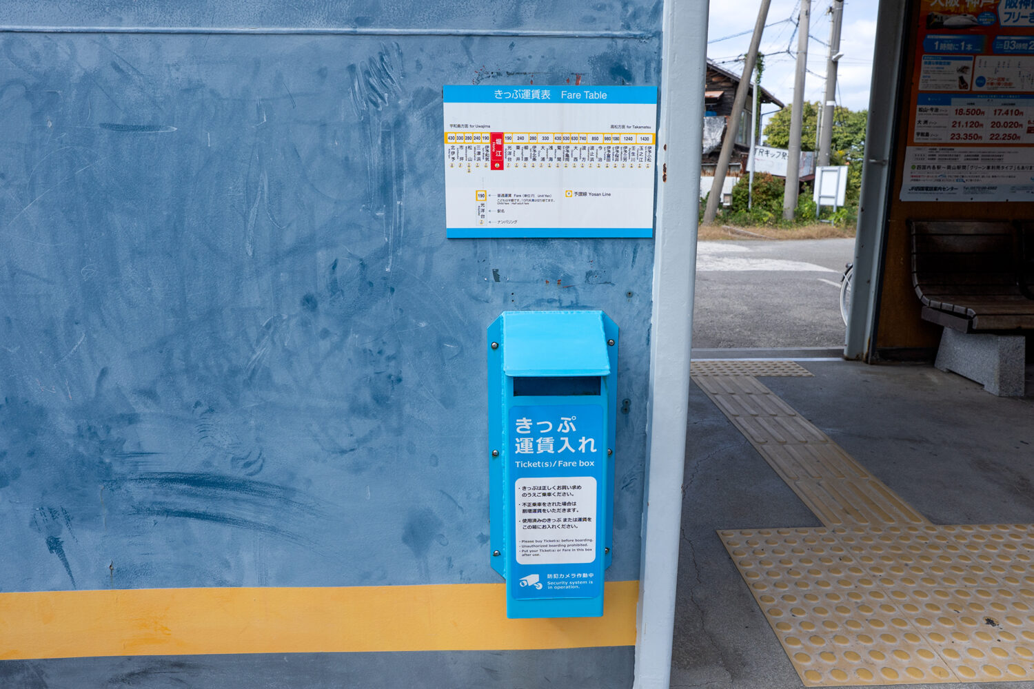 水色のきっぷ回収箱。運賃も入れていいらしい