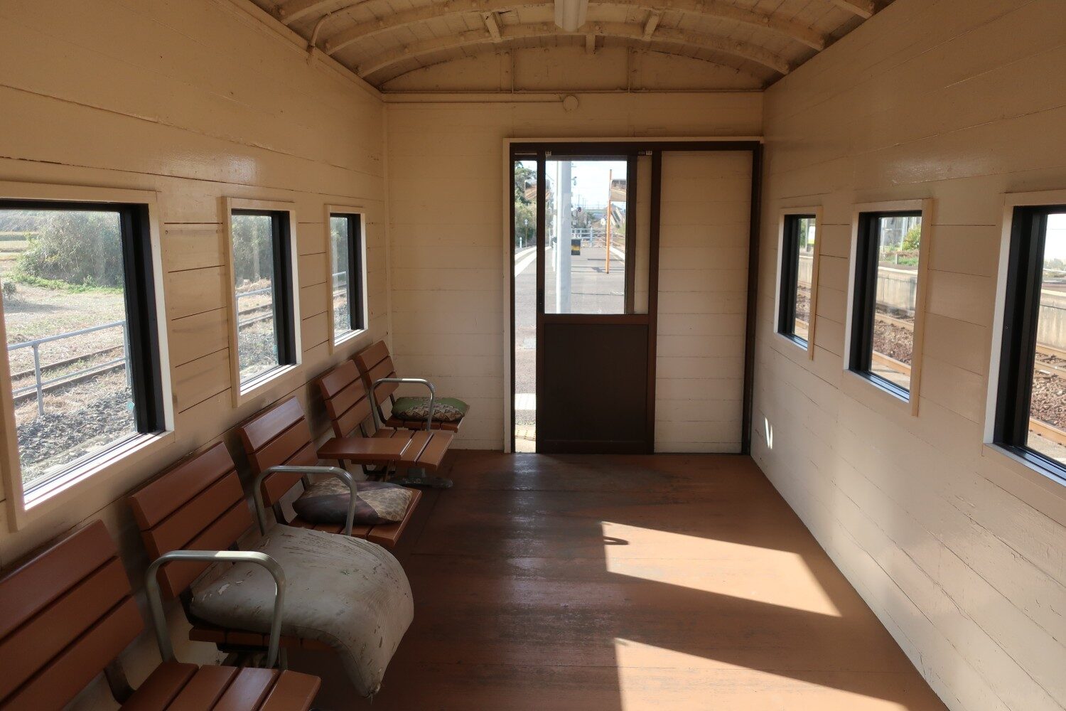 「この待合所は、余剰貨車を改造して試作したものです」
