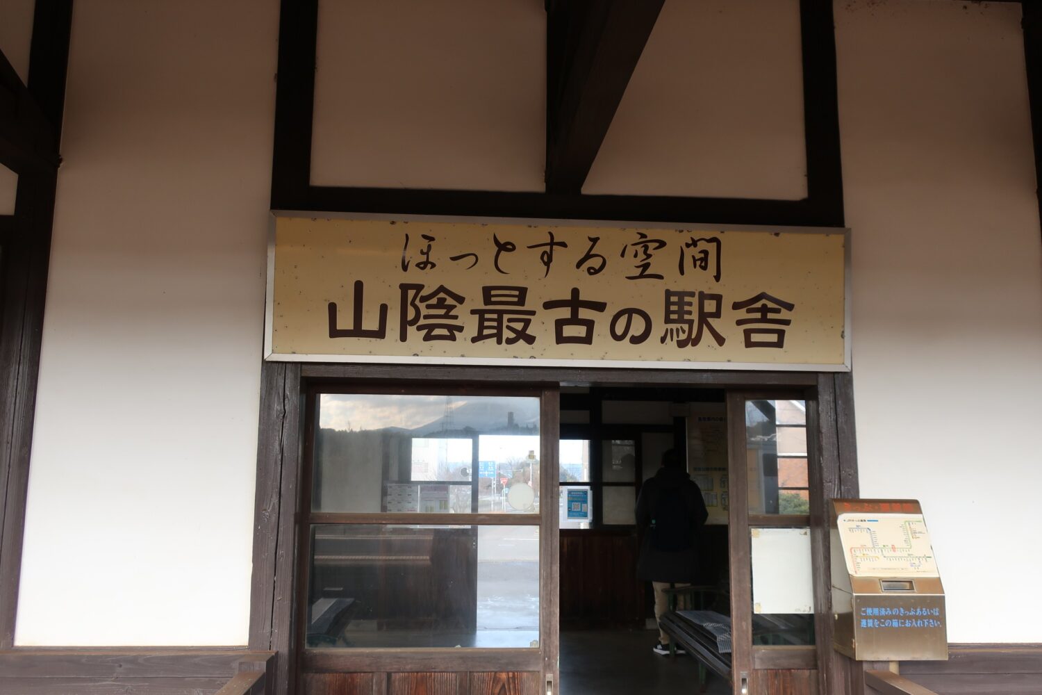 ところで、御来屋駅はダルマ待合室があるだけではなく、駅舎も1902年(明治35年)以来使われ続けている「山陰最古の駅舎」で、国の登録有形文化財に登録されている、という貴重なものだ。
