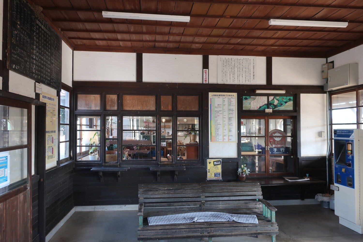このときうっかりしていたのだが、左奥の壁面に、この待合室を作った経緯を解説した重要な掲示板があったのだ。写真を拡大しても文字が読めない。